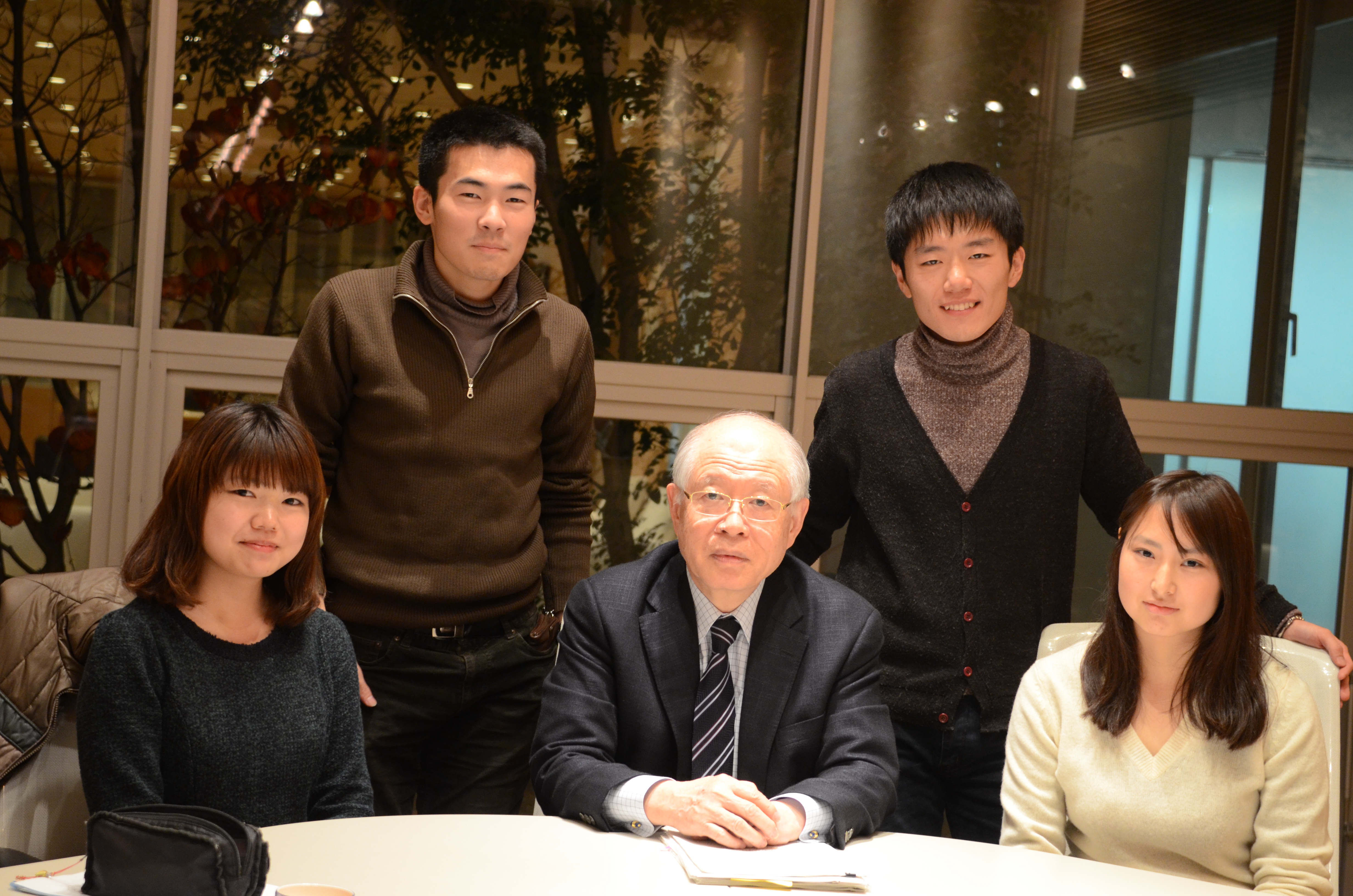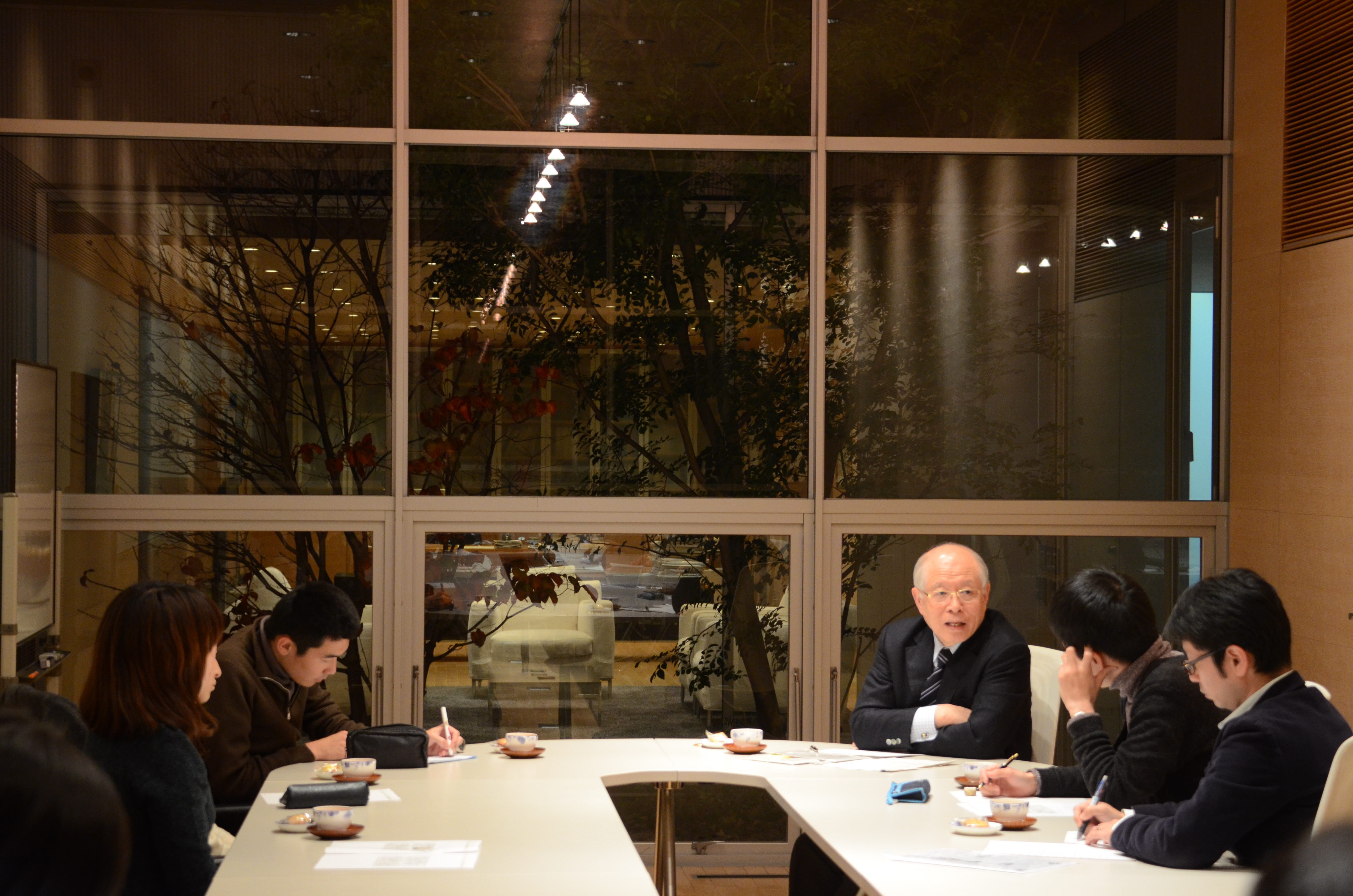 University Professor Ryoji Noyori(President of RIKEN) has contributed "Kamitsubute" articles to the Chunichi Shimbun since January 2013. He regularly holds academic talks derived from those articles with students at Nagoya University. The first Noyori Academy Salon was held on November 29, 2013, and Prof. Noyori and four students from various backgrounds frankly discussed the topic "The Nobel Prize and World-leading Nation in Science."