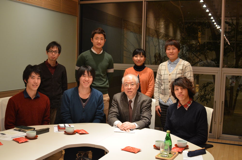 University Professor Ryoji Noyori, President of RIKEN and a Nobel Laureate in Chemistry (2001), has contributed numerous articles to "Kamitsubute" in Chunichi Shimbun since January 2013. Based on these articles, he holds regular academic talks with students at Nagoya University. At the Thirteenth Noyori Academy Salon, held on February 9, 2015, Prof. Noyori and six students from different academic fields openly discussed the topic of "Mentor and Me." In "Kamitsubute," Prof. Noyori claimed that mentors who can really be respected by students are neither lecturers, who are good just at teaching, nor great researchers, who have published a lot of articles, but "savants," who can be objects of admiration and reverence for students.