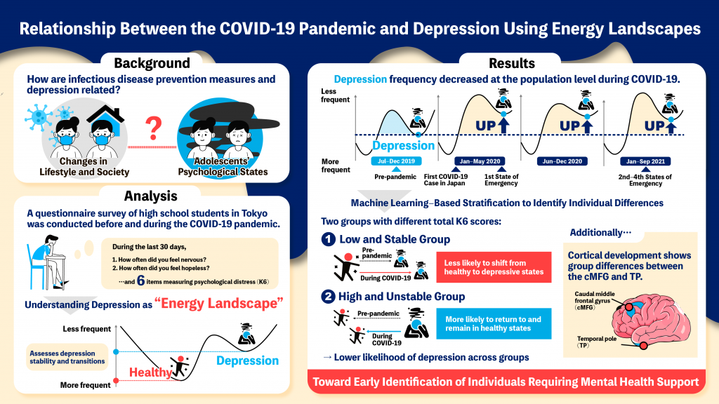 Using energy landscape analysis, a model that calculates the probability of different mental states, the researchers found that before the pandemic students were about 11 times more likely to be in healthy states than depressive ones. During the pandemic, this increased to 15-18 times.