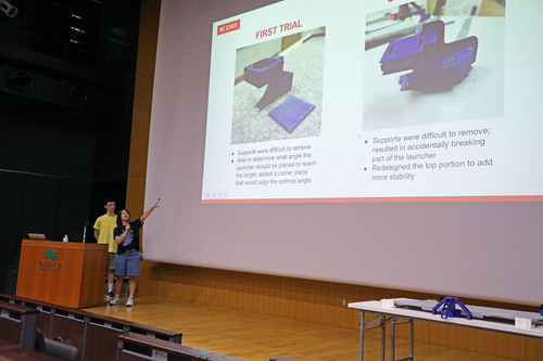 The morning session featured presentations by international students, beginning with the “Niche Tourism @Nagoya Idea Pitch,” where students from the School of Humanities presented innovative tourism concepts for the region. This was followed by project reports from participants in the Summer Intensive Learning Program (SILP), where ten undergraduate and graduate students from North Carolina State University, a strategic partner of Nagoya University, and the University of Washington showcased their collaborative research achievements. The students presented projects on topics including robotics, generative AI, and engineering design challenges—such as a ball launcher system designed to achieve consistent trajectories. In the afternoon session, a Nagoya University student shared her exchange experience at the University of Iceland, followed by an academic writing seminar led by Professor Roy Sidle from the University of Central Asia.