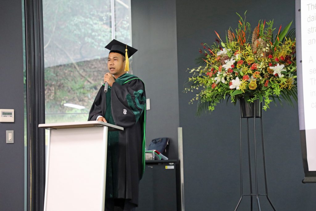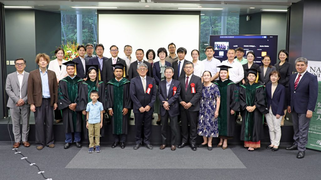 The event opened with remarks from ASCI Director Akira Yamauchi, followed by congratulatory messages from Nagoya University President Naoshi Sugiyama and the deans of participating graduate schools where the graduates have completed their doctoral programs. The ceremony also included video messages and online greetings from international guests of honor representing government agencies and academic institutions across Asia, where the graduates are working.