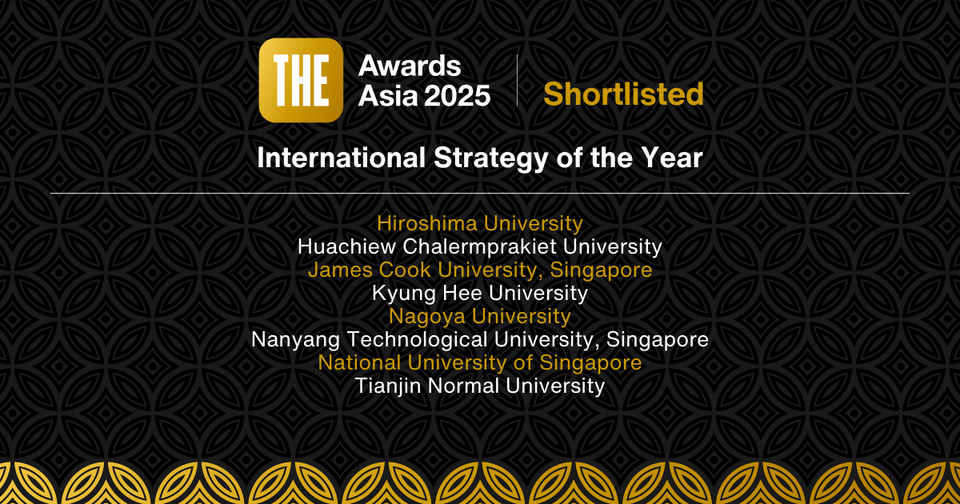 Nagoya University has been named a finalist for the Times Higher Education (THE) Awards Asia 2025 in the International Strategy of the Year category.