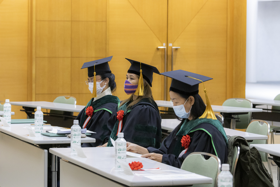 Held in a hybrid format, with staff and graduates attending both in person at Nagoya University Symposion Hall and online at the Asian Satellite Campuses in Cambodia, Laos, Mongolia, and the Philippines, the event gave graduates the opportunity to present their doctoral theses to the audience as their final project at Nagoya University.