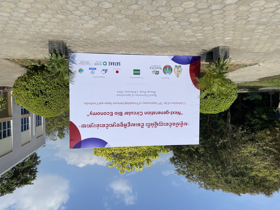 Thanks to cooperation with the Embassy of Japan in Cambodia, Nagoya University could organise this symposium in connection with a series of events celebrating the 70th anniversary of friendship between the two countries. The symposium itself was co-organised with the Royal University of Agriculture, Cambodia, and the General Directorate of Agriculture, Ministry of Agriculture, Forestry, and Fisheries, Cambodia. It was also supported by Cambodian and Japanese government agencies, private companies, and international NGOs.