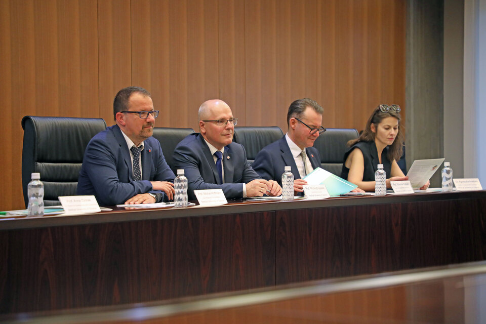 The delegation, led by Vice Rector for Clinical Affairs Michał Hoffmann, paid a courtesy visit to Nagoya University President Naoshi Sugiyama at the Toyoda Auditorium. The visiting group included Vice Rector for Development and Cooperation Anna Zaczek, Vice-Rector for Science Michał Żmijewski, and other senior faculty and staff across the university.
