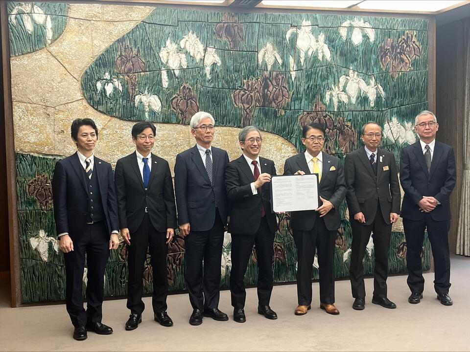 On Monday, February 17, 2025, Nagoya University and the Aichi Cancer Center signed a Comprehensive Agreement on Further Strengthening Collaboration at the Aichi Prefectural Guest House. This agreement strengthened and expanded the partnership initially established through two previous agreements in October 2018 and October 2023. The signing ceremony was attended by key representatives from Aichi Prefecture, the Aichi Cancer Center, and Nagoya University, including President Naoshi Sugiyama.
