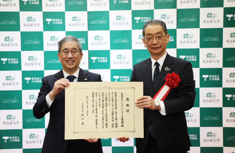 Nagoya University held a ceremony at its Higashiyama Campus to thank Tokai Tokyo Financial Holdings, Inc. and the Tokai Tokyo Foundation for their significant financial contributions to academic and educational exchange between Japan and the United Kingdom at a ceremony on March 27, 2025.