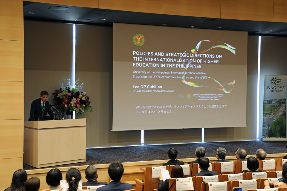 Following a courtesy call to Tokai National Higher Education and Research System (THERS) Chancellor Seiichi Matsuo and Nagoya University President Naoshi Sugiyama by UP President Angelo Jimenez together with the UP Board of Regents and the Presidential Advisory Council, the entire delegation gathered for the inaugural “Nagoya University-University of the Philippines Academic Leaders’ Forum on the Internationalization of Higher Education.”