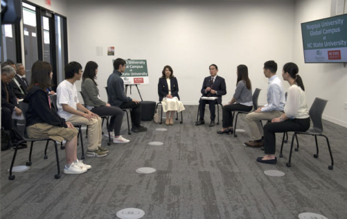 They then met with seven Japanese students who are currently studying in North Carolina or are planning to this year. Ms. Tajima will be at NC State University from the fall semester this year, and Tokunaga Kota from the School of Medicine is currently studying abroad at Duke University.