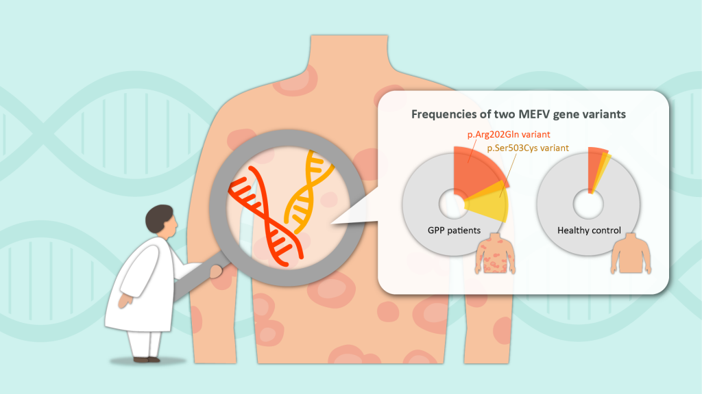 To address this problem, a group led by Prof. Masashi Akiyama, Takenori Yoshikawa, and Dr. Takuya Takeichi from the Department of Dermatology at Nagoya University Graduate School of Medicine used next-generation sequencing to investigate the genes of Japanese patients with GPP. They found that higher frequencies of two MEFV gene variants, p.Arg202Gln and p.Ser503Cys, were associated with GPP. In particular, 21% of the patients carried the variant p.Arg202Gln variant and 13% carried the p.Ser503Cys variant.