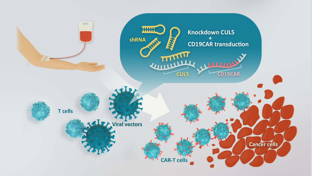 The Nagoya University researchers developed a new way to partially reduce CUL5 activity by using a virus to deliver genetic material to CAR-T cells. “We achieved the CAR-transfection and shCUL5 transduction at once by virus transfection,” Terakura said. “As the T lymphocytes were not subjected to electroporation, they remained healthy after transfection.”