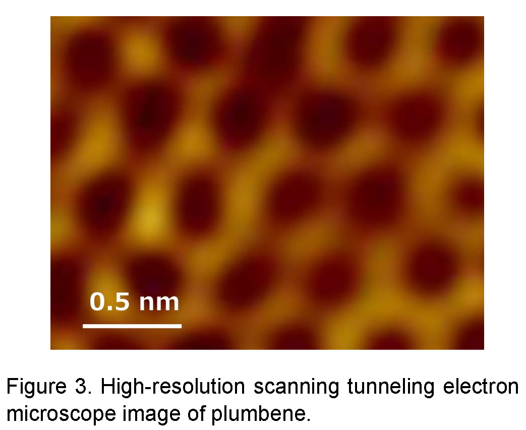 Now, Nagoya University-led researchers have created plumbene by annealing an ultrathin lead (Pb) film on palladium Pd(111). The resulting surface material has the signature honeycomb structure of a 2D monolayer, as revealed by scanning tunneling microscopy (Fig.3).