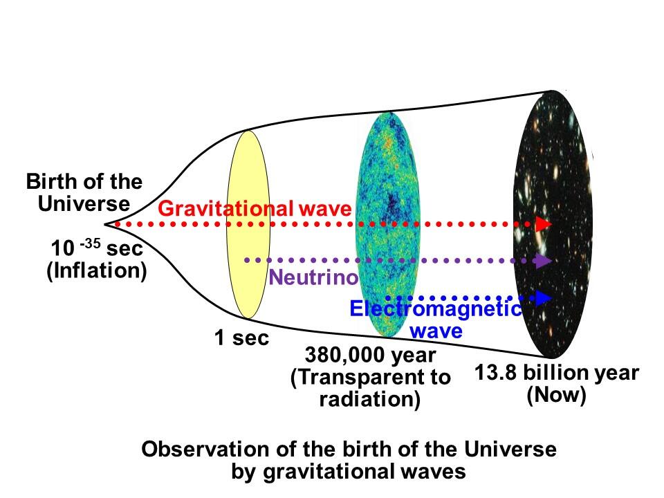 We can see whether inflation really existed, and if so, what it was like. Because electromagnetic waves could not travel directly in a straight line until 380,000 years after the birth of the universe, the universe before that time cannot be directly observed. Gravitational waves are the only way to directly observe the universe immediately after its birth. Since gravitational wave observation is more like “hearing” than “seeing,” and this research will enable us to “hear” the birth of the universe.