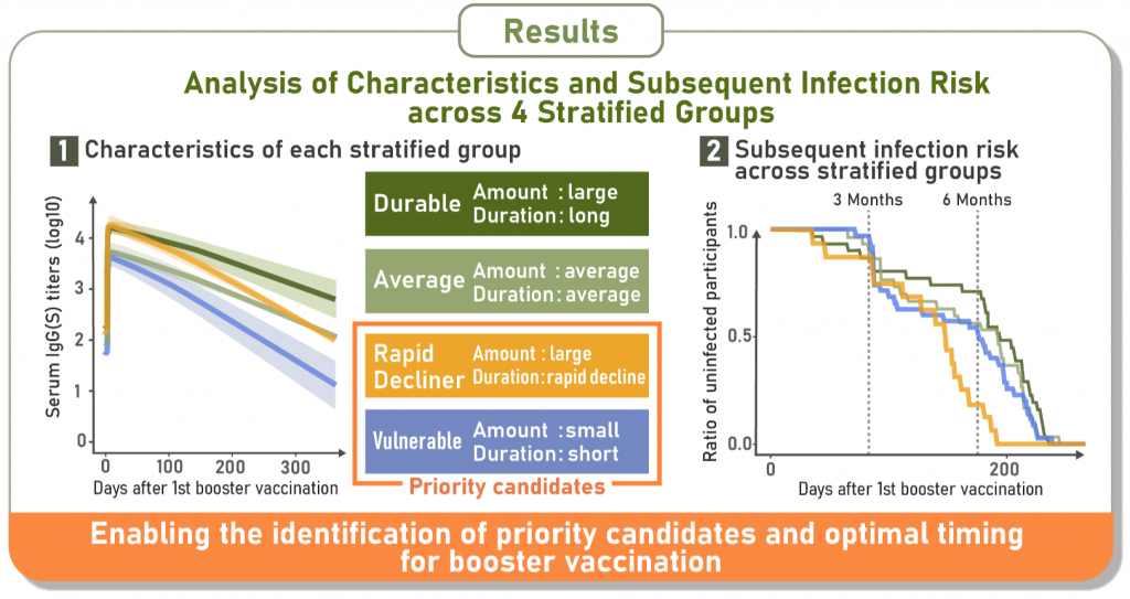 Hyeongki Park, Naotoshi Nakamura, Sho Miyamoto, Yoshitaka Sato, Kwang Su Kim, Kosaku Kitagawa, Yurie Kobashi, Yuta Tani, Yuzo Shimazu, Tianchen Zhao, Yoshitaka Nishikawa, Fumiya Omata, Moe Kawashima, Toshiki Abe, Yoshika Saito, Saori Nonaka, Morihito Takita, Chika Yamamoto, Hiroshi Morioka, Katsuhiro Kato, Ken Sagou, Tetsuya Yagi, Takeshi Kawamura, Akira Sugiyama, Aya Nakayama, Yudai Kaneko, Risa Yokokawa Shibata, Kazuyuki Aihara, Tatsuhiko Kodama, Akifumi Kamiyama, Tomokazu Tamura, Takasuke Fukuhara, Kenji Shibuya, Tadaki Suzuki, and Shingo Iwami. (2025) Longitudinal antibody titers measured after COVID-19 mRNA vaccination can identify individuals at risk for subsequent infection. Science Translational Medicine 17, 816. https://doi.org/10.1126/scitranslmed.adv4214