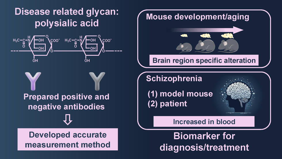 A group from Nagoya University in Japan has developed a simple, accurate, and sensitive method for measuring polysialic acid, a unique acidic glycan found in the brain. Polysialic acid fluctuates in the blood of patients with psychiatric disorders. As it is increased in schizophrenia patients, the glycan represents a potential diagnostic tool and possible target for treatment.