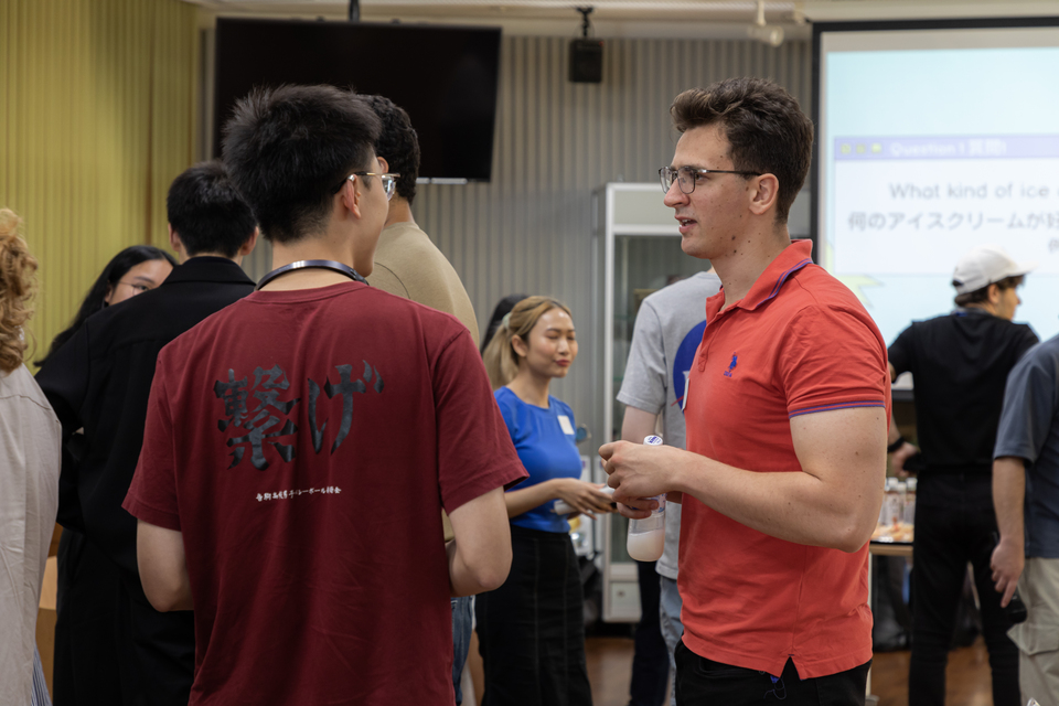 Coffee Hour is led by a group of student organizers, who plan the meetings around themes. On June 4th, 2024, with temperatures touching thirty degrees celcius in Nagoya, they held their first event of the 2024 academic year – a speed-meeting ice breaker event with ice cream to get in the summer mood.