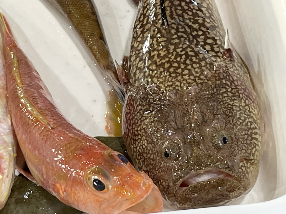 Brandishing a stack of A4 paper, Ujihara dives into an explanation about the various deep-water fish we are likely to encounter at the port. Despite the noisy environment, we listen to Ujihara explain why the Minamichita region is a great place to see different deep-water fish species. He is a seasoned speaker on deep-water fish, sharing his knowledge for several years at the NUM event "Let’s Draw Deep-Sea Fish". As Ujihara speaks, we hear the rumble of an approaching fishing boat. It soon docks in front of us and begins unloading the day’s catch. Ujihara has developed a strong relationship with fishers in this port over the past seven years so they appear happy to share fish they will not sell from their catch with the retired academic.