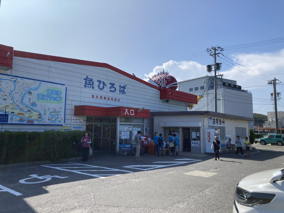 For the Nagoya University Museum event, participants meet at the quaint, roofed market known as Toyohama Fish Garden, which sits next to the port. Before the event begins, they seize the opportunity to explore the vintage white market building brimming with fresh, local seafood. Tourists, locals, and day-trippers stroll past seafood restaurants and shops that sell fish, squid, and shellfish. An eatery tempts visitors with fresh sashimi and Tenmusu, a tantalizing rice ball crowned with shrimp tempura and wrapped in a sheet of seaweed.